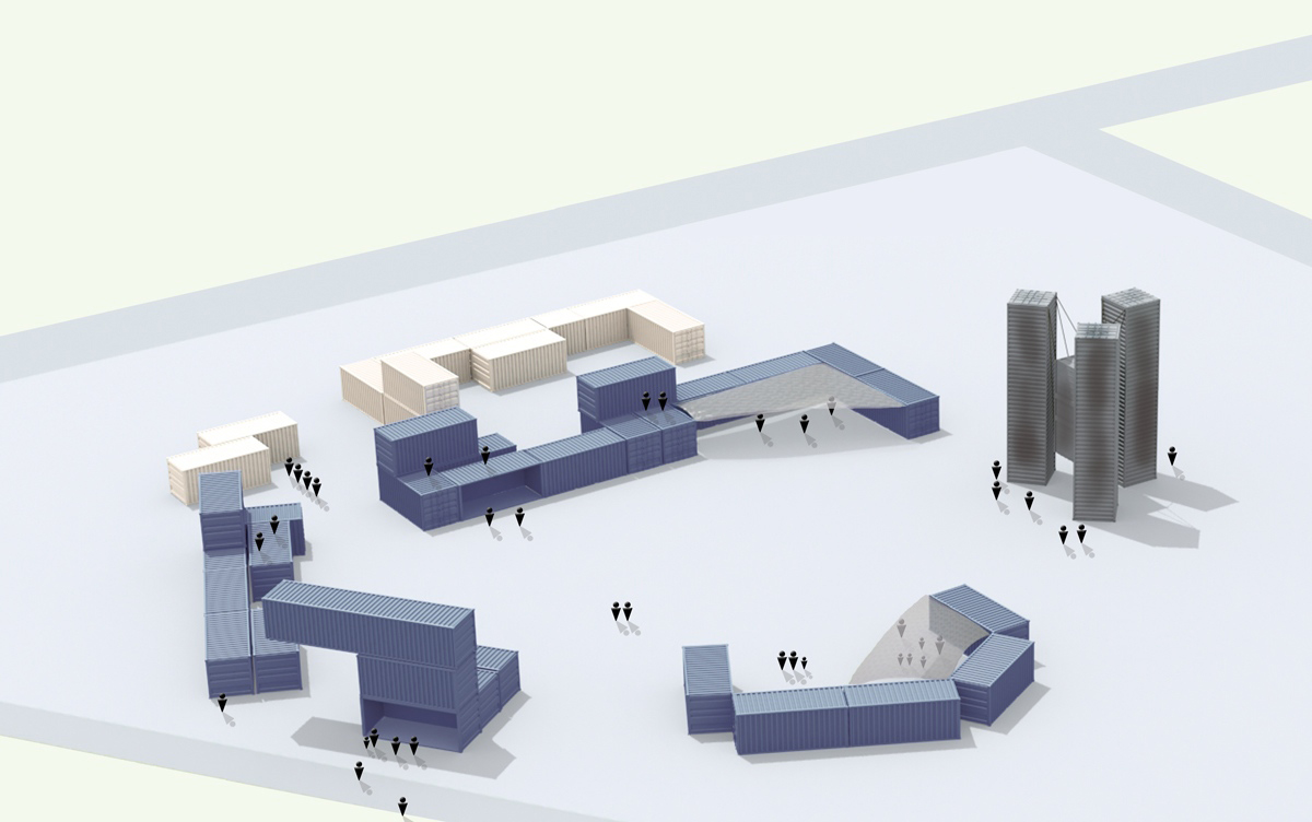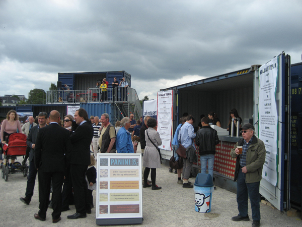 container city - statement Container City is the entry point and administrative hub of Sculpture by the Sea Aarhus 2011. Assembled from refurbished containers that reference an industry so important to Aarhus and Denmark, it also alludes to the temporary buildings created for the “White City” National Exhibition staged on the same site in 1909. Many of the functions of a city are to be found here also: administration and technical services offices, headquarters for business and commercial outlets, education facilities, places to eat, to drink, to gather together. And like most cities, a temple is to be found at its heart: consumer temple- aarhus by Australian sculptor Gary Deirmendjian. Both projects have informed the development of the other across many months and with the assistance of many people from Denmark and Australia. However each project required the freedom to realise it’s own aims and resolve it’s own challenges. Container City is firstly a response to providing for administrative and technical necessities in a beautiful but unpredictable landscape. Where as consumer temple – aarhus is one artist’s sculptural response to contemporary global challenges. Side by side they act to both reinforce and question each other. Together they meet the vast scale of the Tangkrogen landscape with the intent of providing an appropriate entry to the exhibition with an artists project at its heart. This relationship is illustrative of the wider challenge for artists and exhibition staff in creating a sculpture exhibition in the public landscape. The landscape itself becomes a quiet but forceful member of the dialogue suggesting it’s own opportunities and limitations; it’s own logic and rhythms. It demands scale in some places and intimacy in others. It provides a stage for a diversity of creative expression that must be viewed through the lens of technical possibility. If a balance is achieved the works have sense of belonging which begins to emerge. It is a condition we can strive for by encouraging the dialogue. Axel Arnott